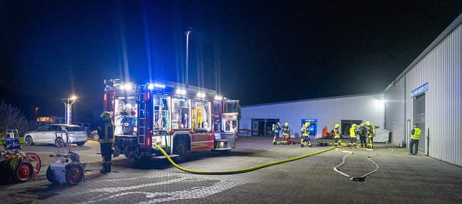 Mitarbeitende eines kunststoffverarbeitenden Betriebs im Ludwig-Erhard-Ring hatten im Bereich einer Anlage eine Rauchentwicklung festgestellt und umgehend erste Löschmaßnahmen eingeleitet. Da jedoch unklar blieb, ob sich der Brand weiter ausgebreitet hatte, entschieden sie sich vorsorglich dazu, den Notruf zu wählen.