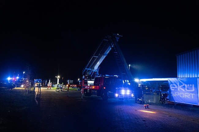 Umgehend wurde ein umfangreicher Löschangriff mit drei C-Strahlrohren eingeleitet und die Ausbreitung des Feuers somit schnellstmöglich eingegrenzt. Hierbei kamen insgesamt 17 Einsatzkräfte mit zwei Fahrzeugen und rund 5.000 Liter Wasser zum Einsatz. Nach Abschluss der Nachlöscharbeiten und der anschließenden Wiederherstellung der Einsatzbereitschaft konnte der Einsatz für die Feuerwehr nach knapp 75 Minuten beendet werden. Ebenfalls im Einsatz war ein Streifenwagen der Polizei. Laut ersten polizeilichen Erkenntnissen hatten Heranwachsende mit Feuerwerk hantiert, welches zu einer Brandentwicklung führte.