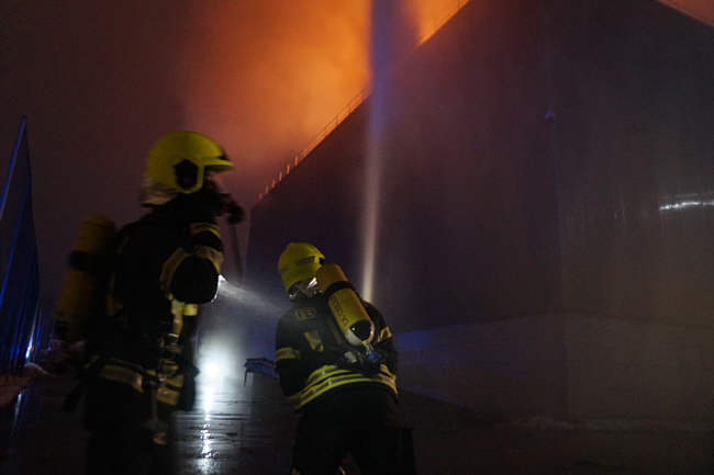 Nach ersten Erkundungen konnte festgestellt werden, dass sich das Feuer rasch im Innenraum der Halle und deren Dach ausbreitete. Unverzüglich wurden hierauf mehrere Alarmstufenerhöhungen durchgeführt, sodass um 05:50 Uhr die höchste Alarmstufe "Brand 4" alarmiert wurde.